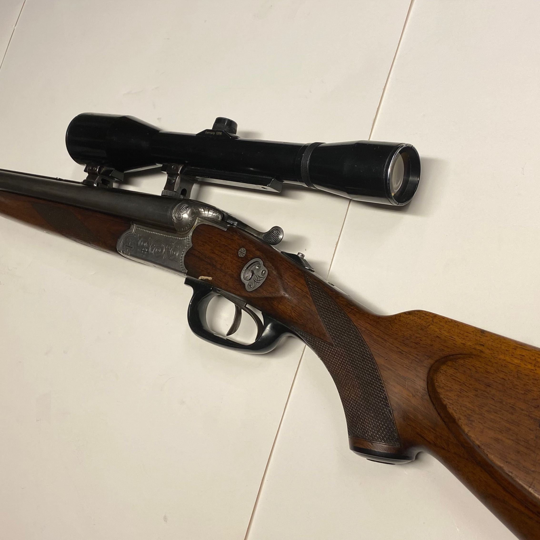 Sauer & Sohn yhdistelmäase drillinki vuodelta 1966. Haulipiiput 16/70, luotipiippu 7x65R. Krieghoffin .22WMR sisäpiippu kuuluu hintaan, vaatii eri luvan piipulle. Saksalainen kiikari 6x suurennoksella, hakajalat. Tästä oiva drillinki järkihinnalla!